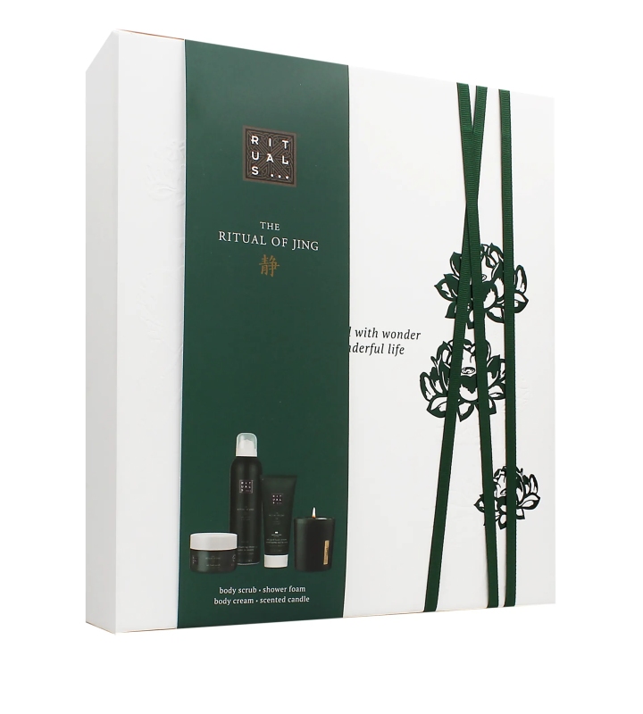 Tělová péče inspirovaná starodávným čínským jing, přestavuje ticho, klid a odpočinek. Napomáhá zlepšit a udržet si celkovou pohodu a klid. Dárková sada Rituals The Ritual of Jing je perfektním dárkem pro přítele, člena rodiny nebo jen tak pro potěšení sebe sama. Krabička obsahuje pěnivý sprchový gel, vonnou svíčku, tělový peeling a tělový krém. S těmito pečujícími produkty obohacenými o jujube a lotosový květ můžete relaxovat a uvolnit se na začátku dne nebo při přípravě na spánek.